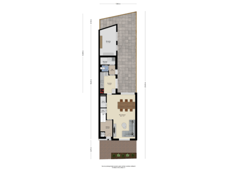 - 36 m² (11,50 meter diep en 3,11 meter breed)