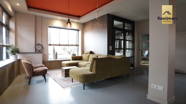 De woning trekt direct de aandacht met een stijlvolle, witgeschilderde gevel, zwarte kozijnen en een authentieke oranje pannenkap. Via de entree komt u in een ruime hal met toegang tot een bijkeuken, trapopgang naar boven en doorgang naar de lichte, sfeervolle woonkamer. Dankzij de vele raampartijen komt er volop daglicht binnen. De oranje plafondaccenten geven deze ruimte een uniek karakter. De afwerking is modern, met gestucte wanden, een gietvloer en een uitnodigende zithoek.