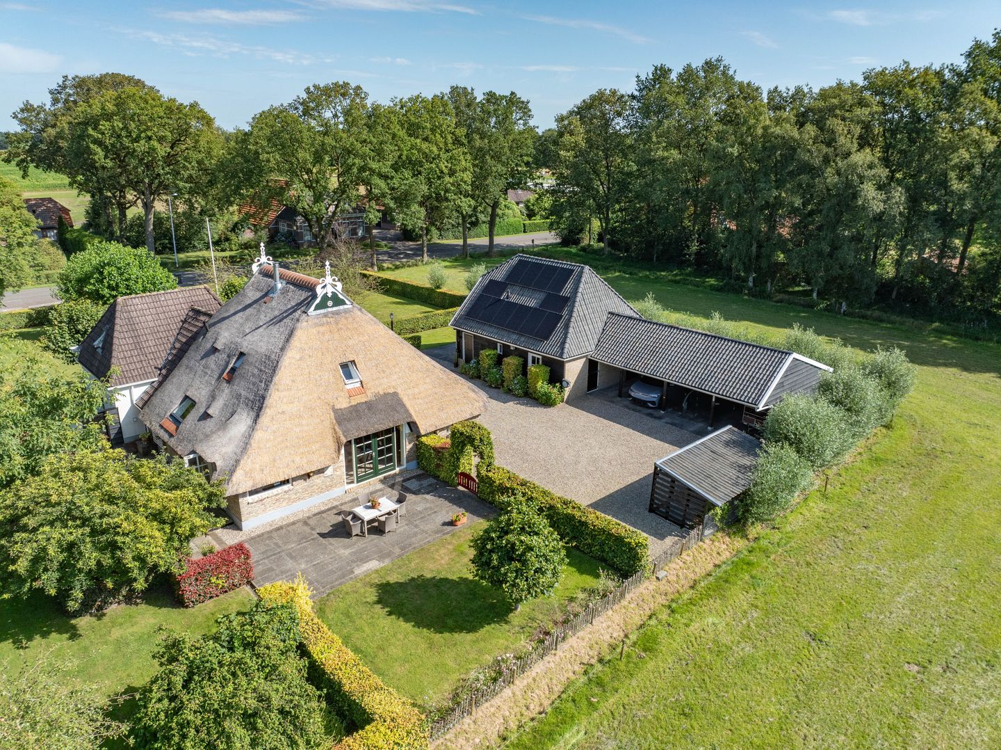Naast de ruime boerderij bevindt zich een luxe gastenverblijf, een stenen schuur en een royale carport met plek voor maar liefst drie auto’s. Alles is tot in de puntjes onderhouden, waardoor u direct kunt instappen.