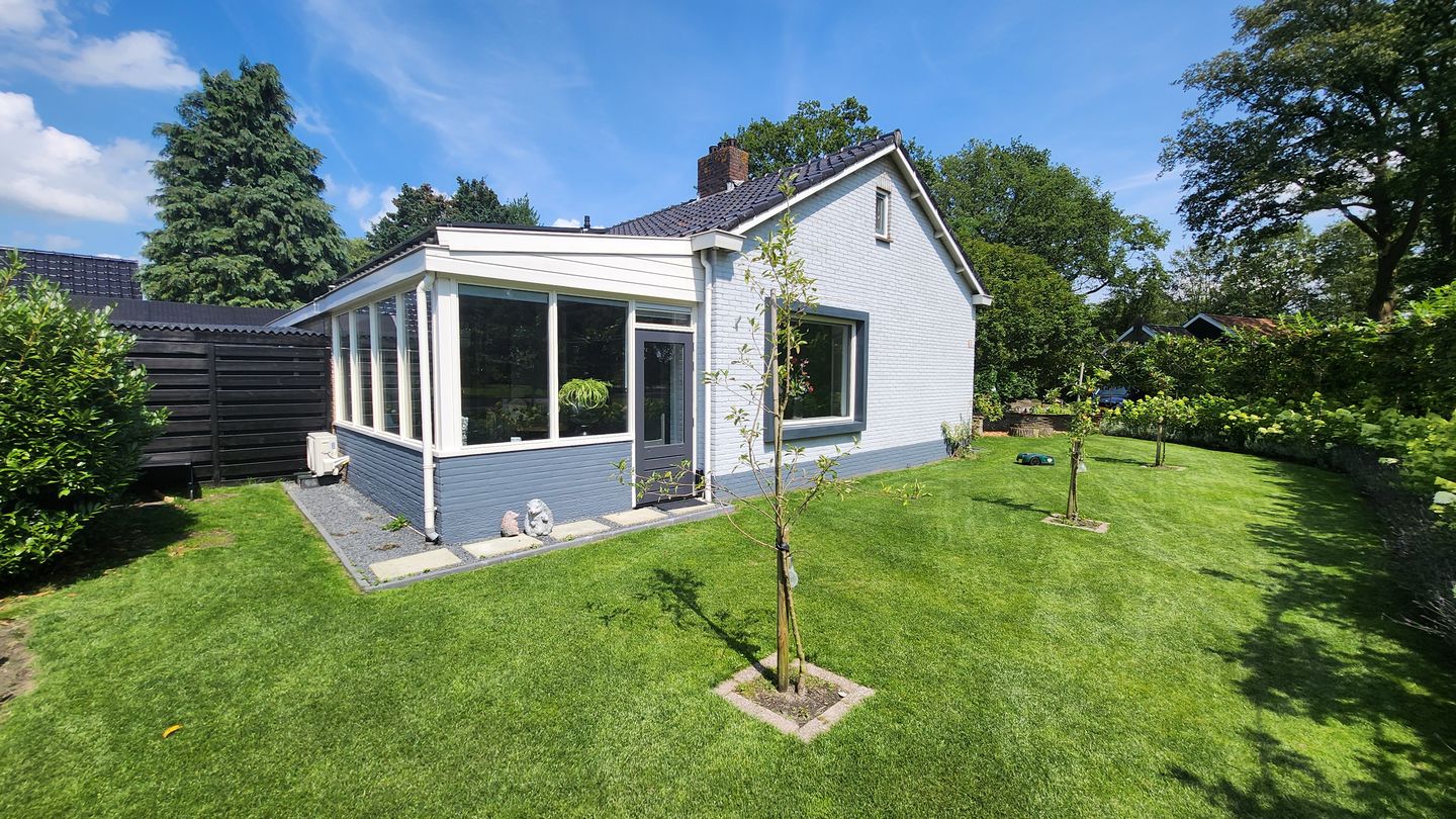 Op een aantrekkelijke hoeklocatie, levensloopbestendige, gasloze, VRIJSTAANDE BUNGALOW met badkamer en 2 (!) slaapkamers op de begane grond. Rondom de comfortabele woning ligt een zonnige tuin met o.a. een ruime veranda van ca. 22 m² waar het heerlijk toeven is. Verder is er een patio met overkapping, een vrijstaande houten schuur/garage op een perceel van ca. 580 m².