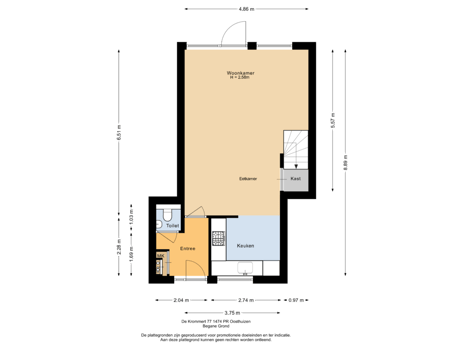 - 57 m² (11,21 meter diep en 5,10 meter breed)
