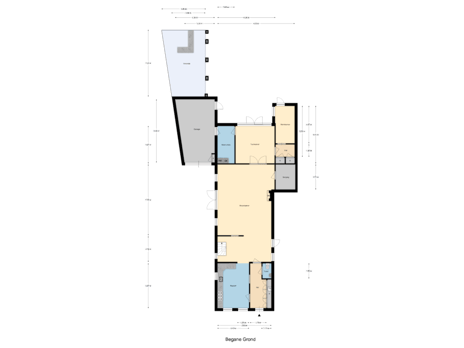 Op de begane grond bevinden zich ook nog een zeer ruime garage met elektrische op afstand bedienbare sectionaaldeur en een loopdeur naar de tuin, een aparte kamer voor de wasmachine en de droger en nog een extra ruimte waar twee opbergkasten zijn en een kamer die momenteel in gebruik is als kantoor-en sportkamer. Deze kamer heeft een loopdeur naar de tuin.