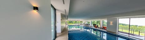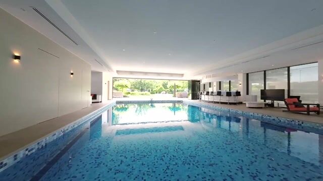 Hier huist een privé-wellness die zijn weerga niet kent: een overdekt zwembad van 8 bij 18 meter met duikplank, stijlvolle loungeplekken, een bar met complete keuken, en een volledig te openen glazen vouwwand naar het zonneterras. Alles ademt rust en luxe. Ondergronds vindt u bovendien een professionele garage met autobrug en wasstraat, een fitnessruimte, sauna, kleedkamers en ruime berging, alsof u uw eigen resort bezit.