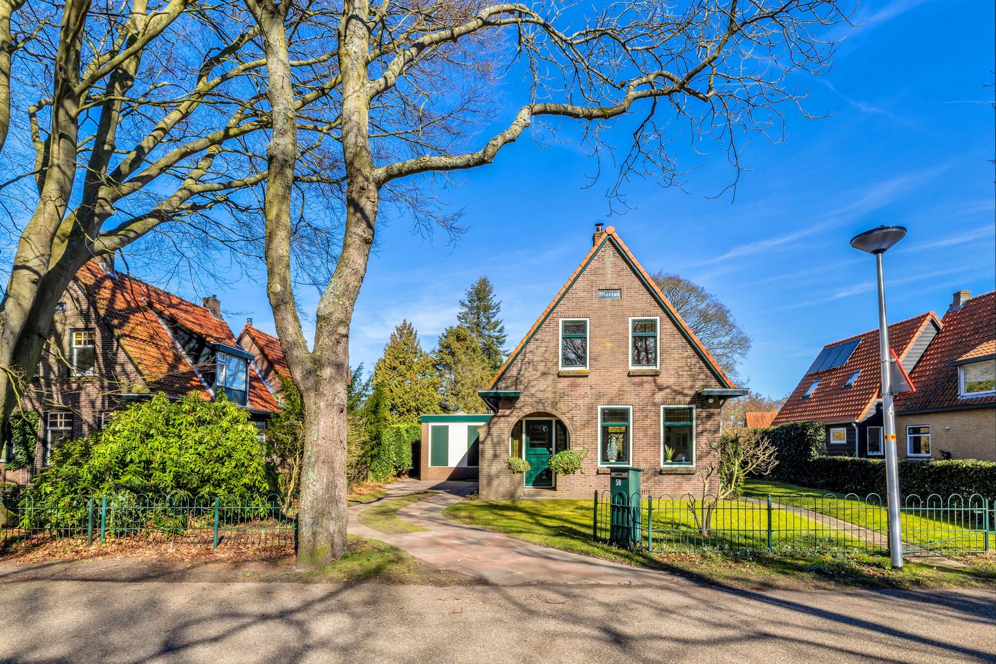 Royale tuin rondom de woning. Aan de voorzijde is er voldoende parkeergelegenheid op de oprit.
