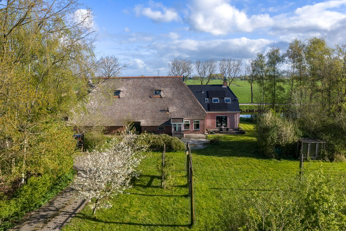 Op een prachtige landelijke locatie gelegen riante woonboerderij aan het water met recent vernieuwd voorhuis en een inpandige garage.