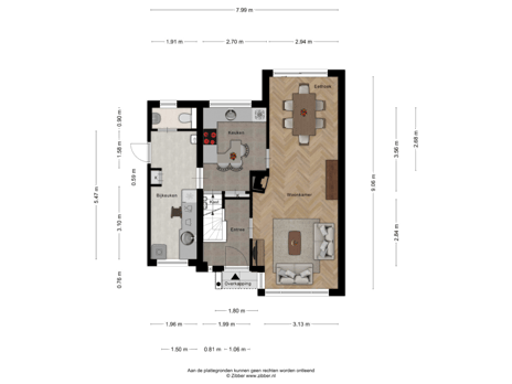 - 79 m² (17,50 meter diep en 4,50 meter breed)