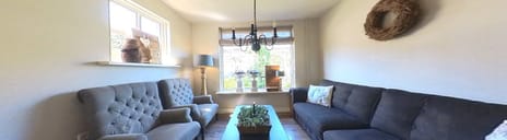 Zeer sfeervol, door de uitbouw een heerlijk ruime woonkamer en mooi afgewerkt met houten gebinten en veel ruimte voor een grote zithoek, een grote eethoek en nog een gezellig leesplekje of speelplekje, dit is de woonkamer. Zie je jezelf hier al gezellig zitten? Aansluitend bevindt zich de inbouwkeuken, deze ziet er mooi uit maar is ook praktisch en van alle gemakken voorzien.