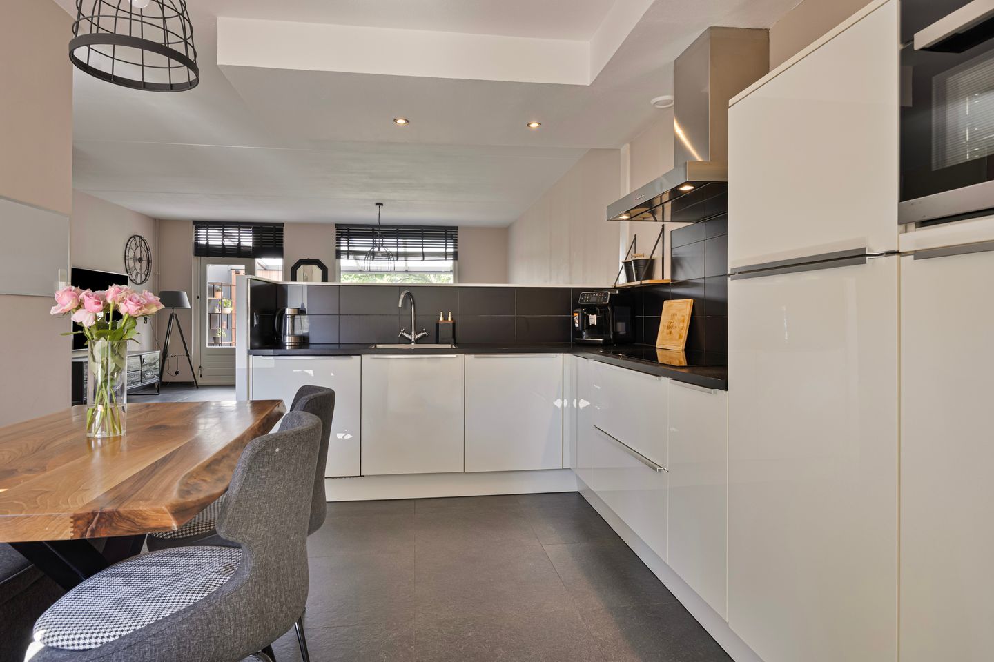 Natuurlijk oogt deze gezinswoning op het eerste gezicht al aantrekkelijk. Met de solide gevel en de zonnepanelen op het dak krijg je al een goed idee van de kwaliteiten. Maar toch komen er verder in de instapklare woning en tuin nog mooie extra’s naar voren. De grootste verrassing vind je waarschijnlijk helemaal achterin. In plaats van achterburen, blijkt de tuin te grenzen aan de groene oever van een brede waterloop. Dit geeft je meteen een gevoel van vrijheid, rust en privacy. Iets waarvan je zeker op het overkapte terras achter de woning maximaal kunt genieten. Het woongenot gaat onverminderd verder binnen in de woning. Via het ruime woongedeelte met luxe eet-leefkeuken ga je verder naar de royale verdiepingen. Waar je alle kansen hebt om met je eigen ideeën over gebruik en inrichting aan de slag te gaan. Vanuit de doodlopende en dus verkeersluwe woonstraat heb je prima verbindingen naar allerlei voorzieningen. Zo vind je in de buurt scholen en een groot park. Verder is er op loopafstand een winkelcentrum met twee supermarkten en verschillende speciaalzaken. En de nabijgelegen verbindingsweg brengt je vlot in het centrum of bij de opritten van de snelwegen. Kenmerken + Parkeren op eigen oprit. Verder parkeergelegenheid in rustige woonstraat en omgeving. Aan de voorzijde van de woning is toegang tot ruime berging. Binnendeur komt uit in woning. + Over verharde oprit naar overkapte voordeur. Binnenkomst in hal met toiletruimte met wandtoilet, meterkast (8 groepen) en garderobe-nis. Elegante tegelvloer met vloerverwarming loopt vanuit de hal drempelloos door in de woonkamer. + Tuingerichte woonkamer met groot venster en ramen boven, naast en van tuindeur zorgt voor royale lichtinval. Afgewerkt met spuitwerkwanden en glad plafond. Praktische trapkast aanwezig. + De open verbinding naar de eet-leefkeuken zorgt voor een natuurlijke scheiding. De keuken is uitgevoerd met een inductiekookplaat, vaatwasser, koelkast en oven, met volop werkruimte. Het geheel is ruim opgezet en heeft zicht op de tuin. + In de bijkeuken zijn aansluitingen voor wasmachine en droger aanwezig, met extra bergruimte en toegang tot de inpandige berging aan de voorzijde. + De achtertuin is recent aangepakt en onderhoudsvriendelijk met een aluminium overkapping aan de woning. De ligging aan het water geeft volop rust, privacy en ruimte. + Drie slaapkamers op de eerste verdieping, voorzien van PVC-vloeren, glad stucwerk en dakkapel aan de achterzijde. Allen met prima lichtinval en indeling. + De badkamer is stijlvol en compleet ingericht met ligbad, inloopdouche, wandtoilet, wastafelmeubel en raam. + Vaste trap naar de tweede verdieping met royale vierde slaapkamer, voorzien van vloerbedekking, kastruimte en goede lichtinval via groot dakraam. Hier bevindt zich ook de afgesloten wasruimte met opstelling van de Remeha HR-combiketel (2021). Bijzonderheden + Energielabel A + 14 zonnepanelen (2014) + Volledig voorzien van dubbel glas + Plat dak vernieuwd in 2022 + HR-combiketel Remeha uit 2021 + Volledig geïsoleerd (dak, muren en vloer) Aanvaarding: In nader overleg