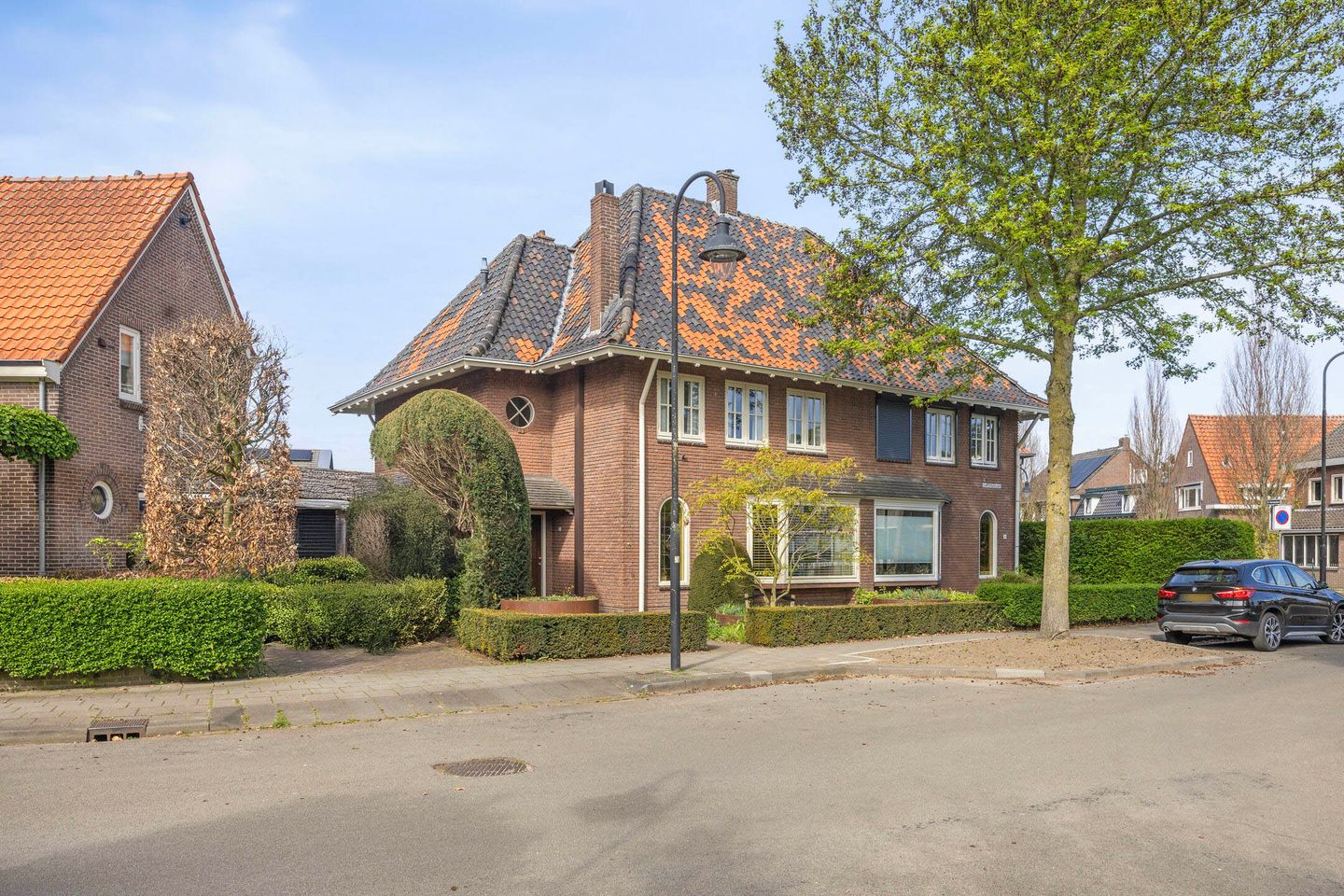 De Doctor Hermanslaan ademt de sfeer van de jaren ’30: groen, stijlvol en rijk aan details. Het huis op nummer 34 voegt daar een eigen, verfijnde uitstraling aan toe. Het metselwerk, de kenmerkende deuren en kozijnen, de bijzondere dakconstructie met overstek en de warme rode dakpannen geven het geheel extra karakter.
