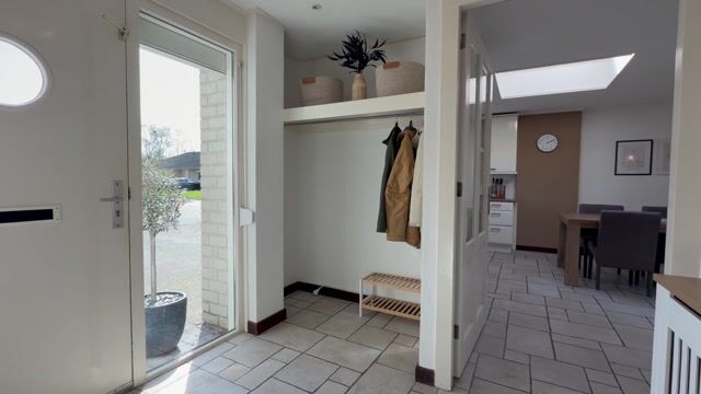 De tegelvloer in combinatie met de VLOERVERWARMING zorgt voor een comfortabel geheel. De LICHTKOEPEL brengt daarnaast extra daglicht binnen, waardoor de ruimte nog lichter en aangenamer aanvoelt. Dankzij de royale opzet is er volop ruimte voor een grote eettafel, een plek waar u graag samenkomt.