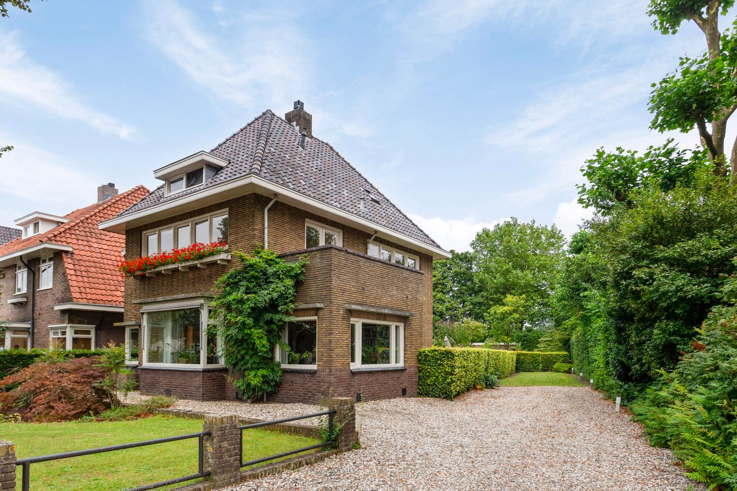 Dit is de perfecte stadsvilla voor liefhebbers van de sfeervolle stijl van de jaren dertig. Alles aan het silhouet van deze markante vrijstaande woning straalt die bijzondere bouwperiode uit. De combinatie van de erker in de woonkamer en de ramenrij op de verdieping straalt dat karakter fraai uit. Alles natuurlijk gesitueerd onder het klassieke schilddak van donker gebakken pannen.
