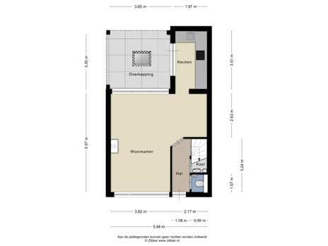 De hoekwoning heeft een inhoud circa 310 m³ en een woonoppervlakte van circa 92 m².