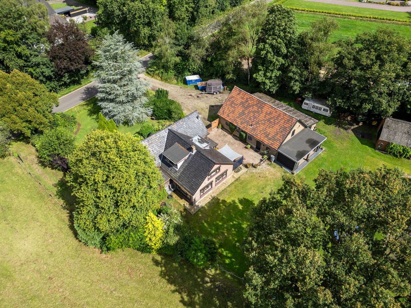 Het royale perceel van 17.270 m² biedt een overvloed aan ruimte en gebruiksmogelijkheden. Op het terrein bevinden zich diverse opstallen die het landelijke karakter van het perceel accentueren. Wat verder op het perceel bevindt zich een speciale paardenschuur met vier paardenboxen, perfect voor het hobbymatig houden van dieren. Deze schuur biedt niet alleen ruimte voor uw paarden, maar ook voor opslag van benodigdheden en materiaal.