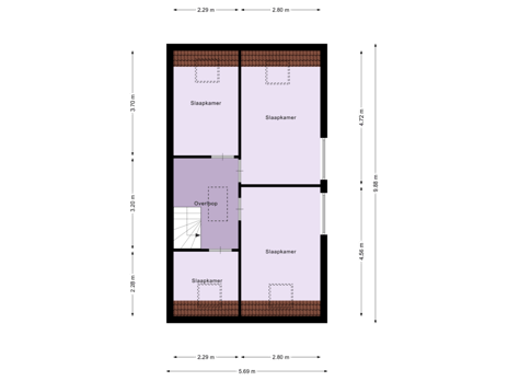 Via de trap bereik je een ruime overloop die toegang biedt tot maar liefst vier slaapkamers. De kamers variëren in grootte, waardoor er volop mogelijkheden zijn voor een combinatie van slaap-, werk- en hobbyruimtes. Vanaf de overloop is er via een vlizotrap toegang tot de zolder, handig voor het opbergen van seizoensspullen of extra voorraad.
