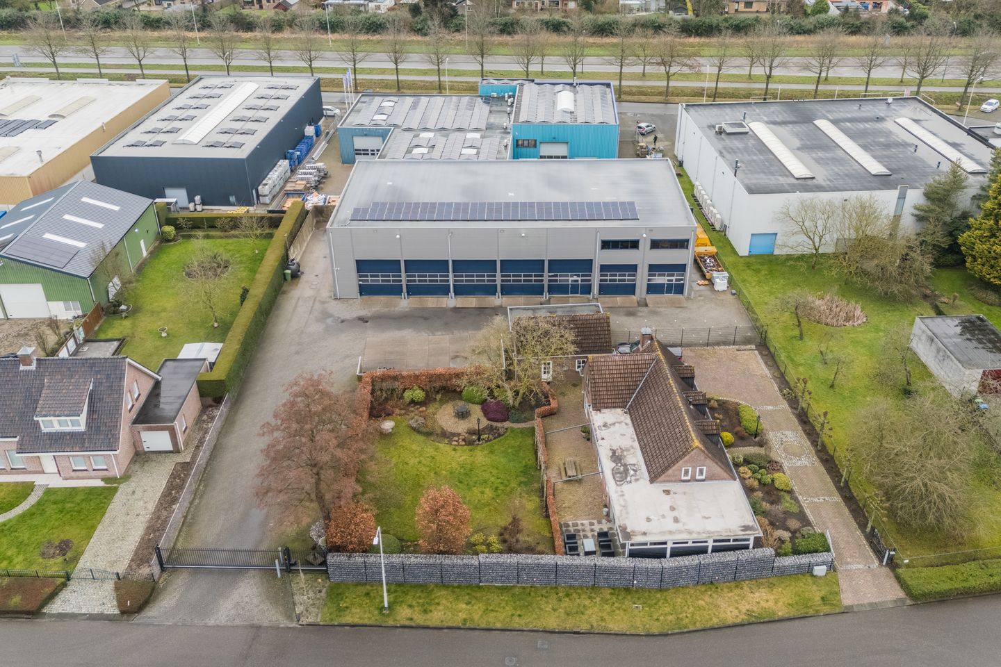 Op het bedrijventerrein ’De Korenweide’ is deze royale bedrijfswoning (± 166,5 m²) met loods (± 985 m²), overdekte opslag en riant buitenterrein gelegen. Het object bevindt zich op een royaal perceel van 2965 m².