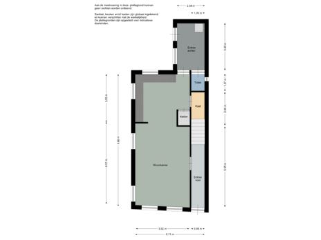 Plavuizenvloer, witgoedaansluitingen en toegangsdeur naar achtertuin.