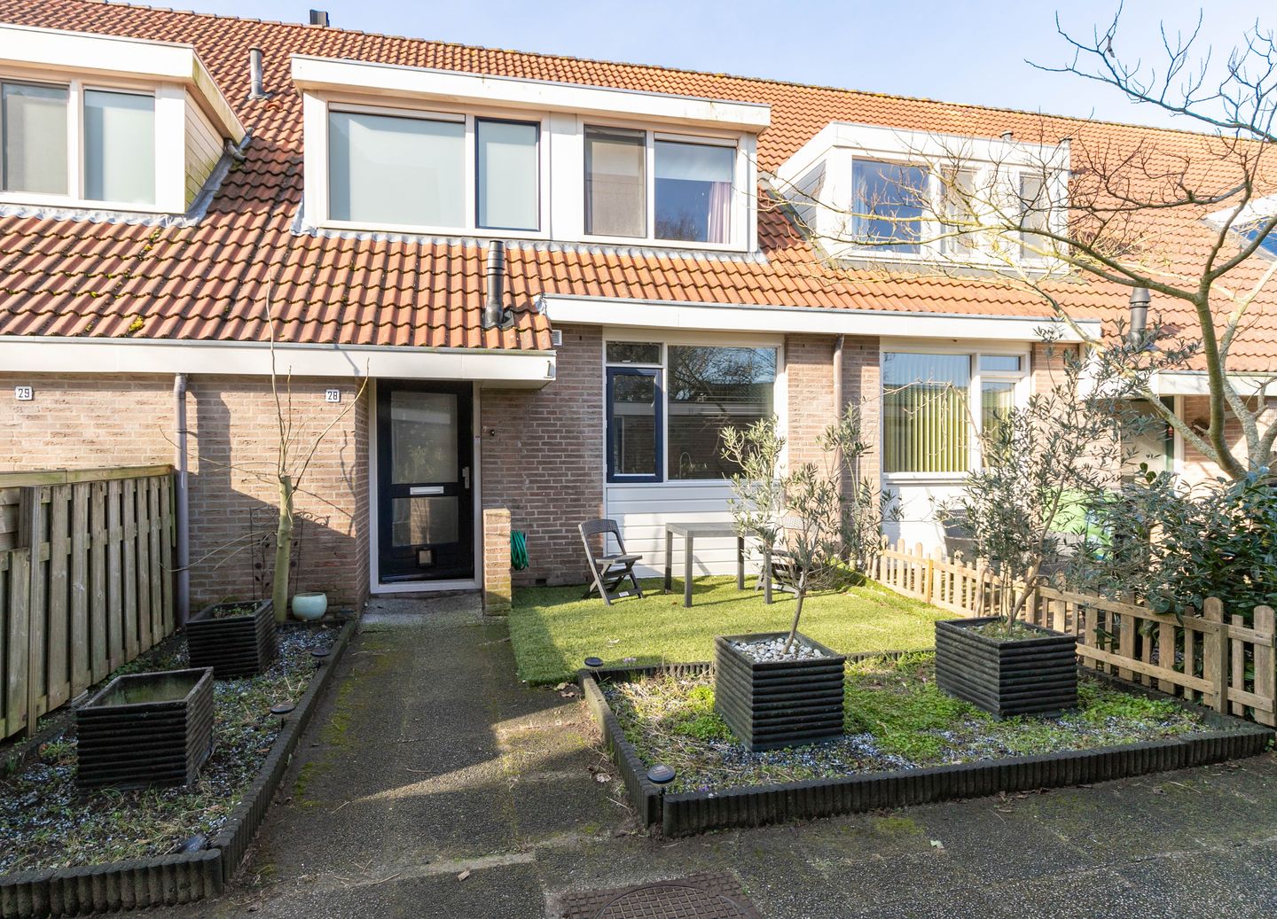 De verzorgde voortuin is fraai aangelegd en beschikt over een ruime stenen berging, ideaal voor extra opslag of het stallen van fietsen.