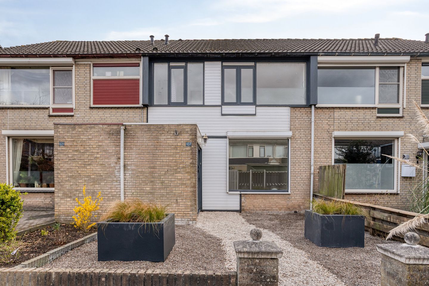 De kozijnen zijn van hout en grotendeels voorzien van isolerende beglazing.
