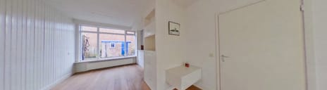 De lichte woonkamer biedt een prettige indeling met aan de achterzijde een halfopen keuken. De keuken is eenvoudig uitgevoerd met een recht keukenblok en biedt direct toegang tot de royale achtertuin. Dankzij de hoekligging en de meerdere tuinen is er veel lichtinval en een fijne verbinding tussen binnen en buiten.