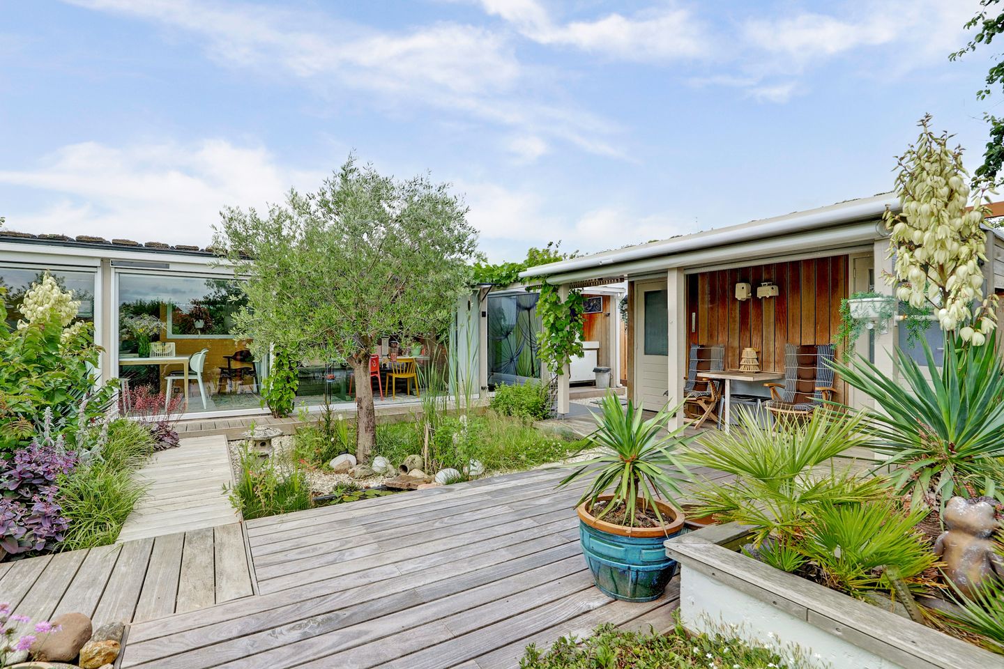 De tuin is echt een El Dorado voor tuinliefhebbers en is voorzien van volwassen groen, prachtige borders met vaste planten en diverse terrassen waar u van alle seizoenen kunt genieten. Ook aan de achterzijde van de bungalow is middels een loopdeur een vlonderterras te bereiken. U begrijpt het, teveel om op te noemen, komt u kijken en mogen wij u een uitgebreide rondleiding geven? Wij verwachten dat een bezichtiging uw enthousiasme alleen maar zal laten toenemen!