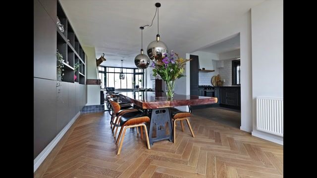 U komt binnen via de hal met meterkast, trapopgang, toilet en handige bergkast. De woonkamer strekt zich uit over de volle diepte van de woning en voelt heerlijk ruim en licht aan. Aan de voorzijde bevindt zich een gezellige zithoek met sfeervolle erker en houtkachel (t.o.), terwijl aan de achterzijde ruimte is voor een grote eettafel. In de uitbouw is bovendien nog plek voor een extra speelhoek, leesplek of werkruimte – een veelzijdige toevoeging aan het wooncomfort.