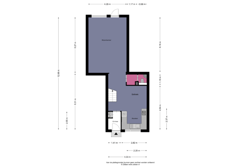 - 96 m² (12,00 meter diep en 8,00 meter breed)