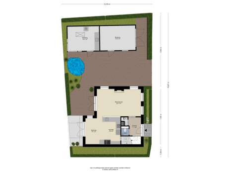 - 124 m² (10,00 meter diep en 12,35 meter breed)