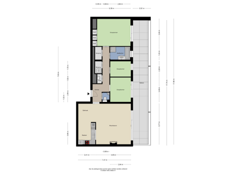 Note: op het filmpje en op enkele foto's ziet u een 'gehavend' terras. Hier worden door de VvE herstelwerkzaamheden uitgevoerd en verbeteringen aangebracht. Uiteraard wordt het appartement overgedragen met een keurig afgewerkt terras.