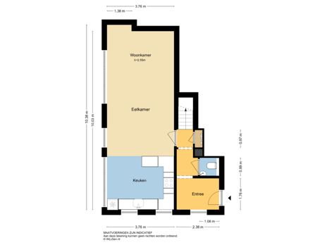 Voor de afmetingen en indeling, zie de plattegrond.