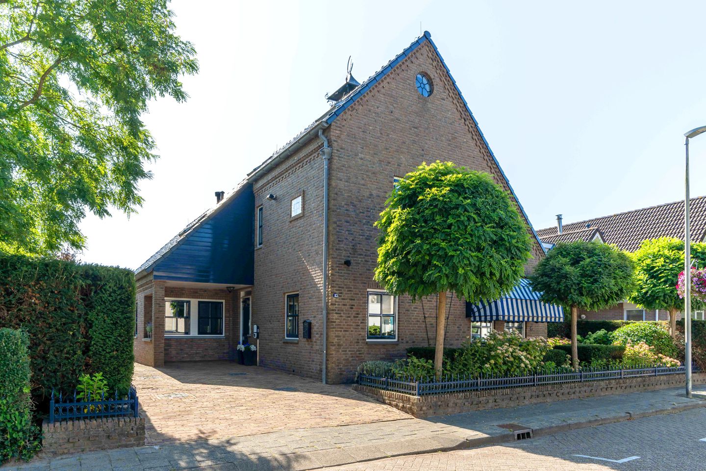 Heb je er oog voor dan zie je direct dat hier kosten nog moeite zijn gespaard bij de keuze van bouwmaterialen. De fraai gemetselde details in de gevels afgewisseld met de zinken hemelwaterafvoeren en de prachtig weggewerkte goten vormen samen met de luxe pannen en roedeverdeling een waar stukje vakmanschap.