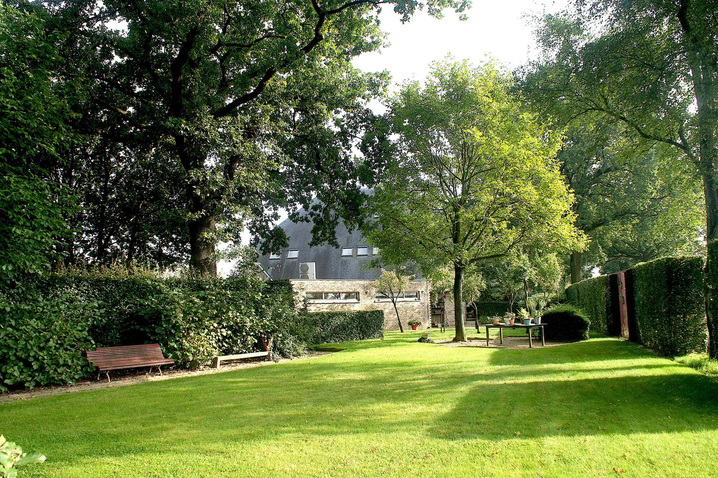 Dankzij de aanwezige bomen is er altijd een fijne balans tussen zon en schaduw.