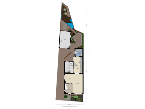 De achtertuin is onderhoudsvriendelijk aangelegd, biedt voldoende privacy en is voorzien van bestrating, een vijver en borders met beplanting.