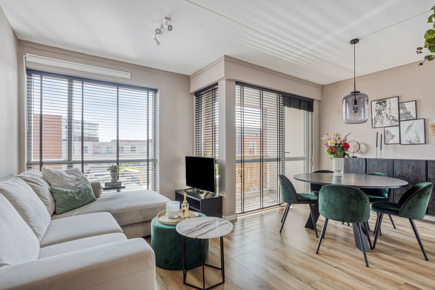 De woonkamer is de plek waar comfort en stijl samenkomen. Denk aan een knusse zithoek en een praktische eethoek, allemaal gelegen op een comfortabele laminaatvloer met vloerverwarming—die overigens door het hele appartement is doorgevoerd. En om het compleet te maken? Een aangrenzend balkon op het zonnige zuidwesten. Met ruimte voor een zitje geniet je hier na een lange dag van de zon