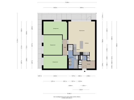 De woning beschikt over drie slaapkamers, waarvan één momenteel in gebruik kan worden genomen als werkkamer of logeerkamer.