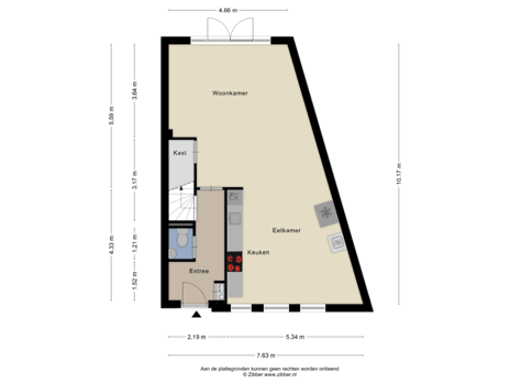 - 40 m² (10,00 meter diep en 4,00 meter breed)