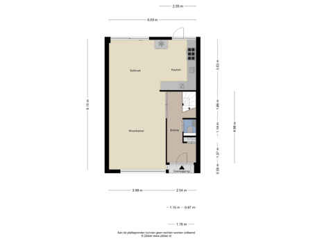 - 63 m² (10,00 meter diep en 6,30 meter breed)