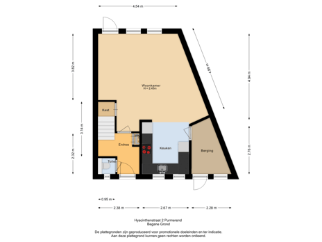 - 26 m² (10,46 meter diep en 2,50 meter breed)
