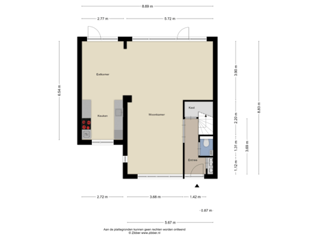 - 135 m² (13,50 meter diep en 10,00 meter breed)