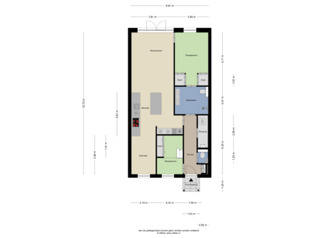 - 35 m² (5,00 meter diep en 7,00 meter breed)