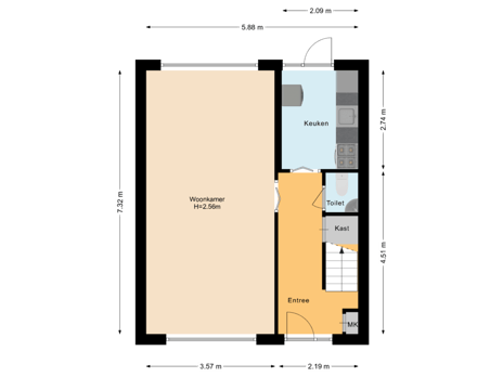 - 77 m² (12,70 meter diep en 6,09 meter breed)