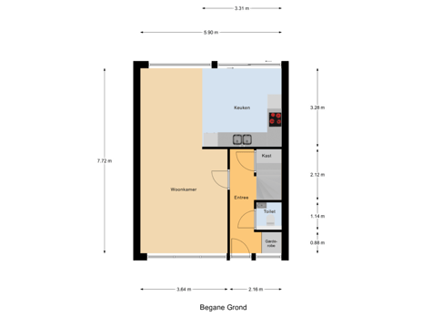 Via de verzorgde entree met laminaat vloer, stucwerk wanden en gespoten plafond komt u in de hal. Hier vindt u de meterkast, een toilet, de trapopgang en de toegang tot de woonkamer.