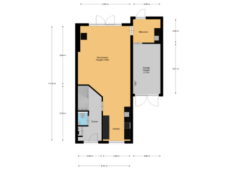 - 96 m² (12,00 meter diep en 8,00 meter breed)