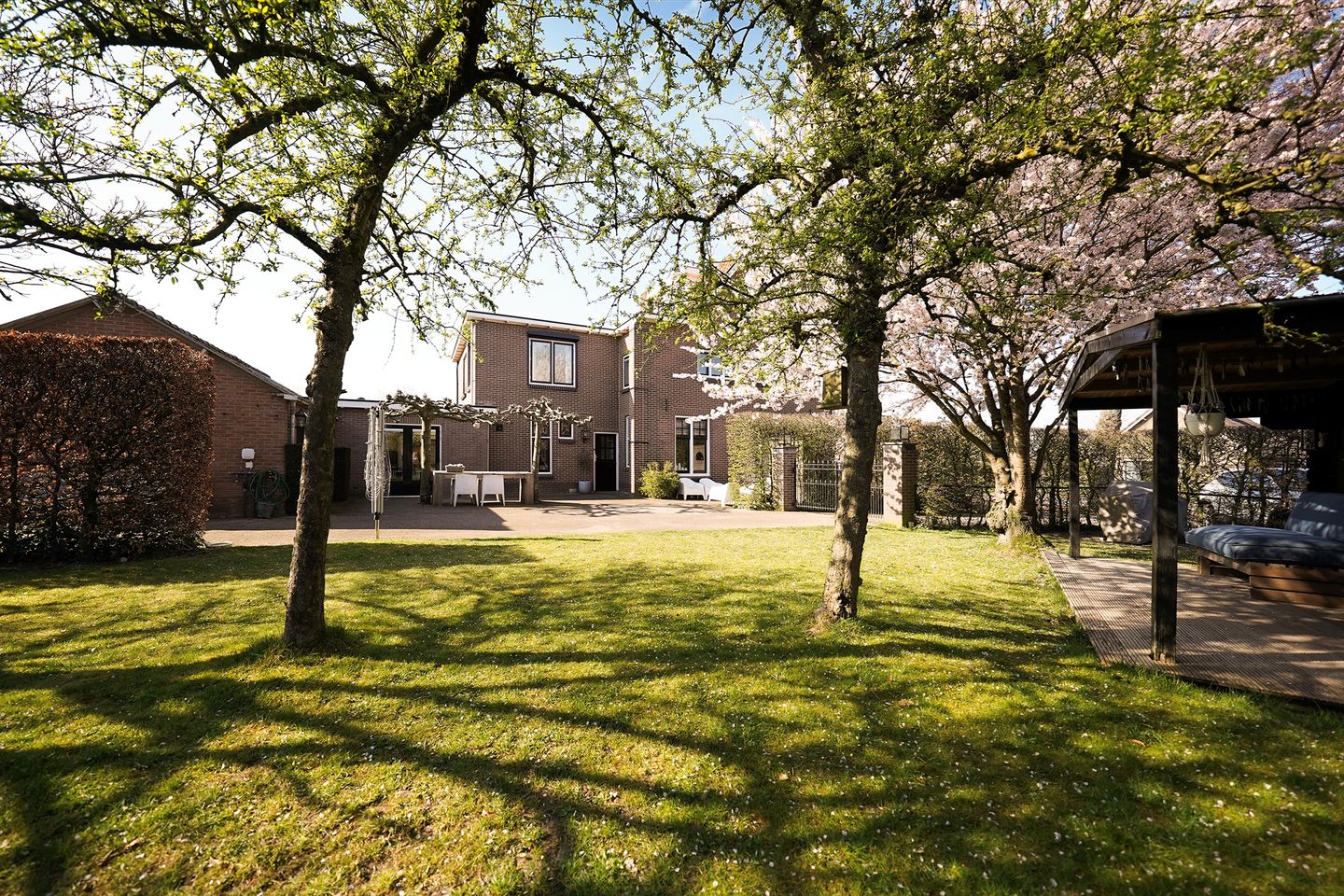 We lopen natuurlijk ook naar buiten. Waar het met het zonnetje en de lente op komst heerlijk verblijven is. De tuin is speels ingericht en voorzien van een verschillende loungeplekken en een houten tuinhuis met veranda. Leuk gedaan! De tuin is voorzien van een besproeiingsinstallatie en de ligging is op het zuidoosten. Achter de garage is nog een fijne ruimte met een overkapte opbergplek, nu deels ingericht als konijnen/kippenhok.