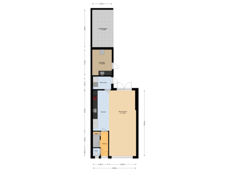 - 60 m² (10,00 meter diep en 6,00 meter breed)