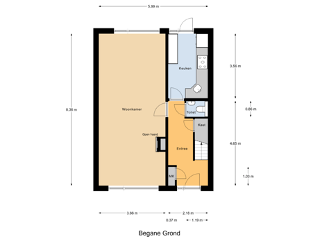- 62 m² (9,50 meter diep en 6,50 meter breed)