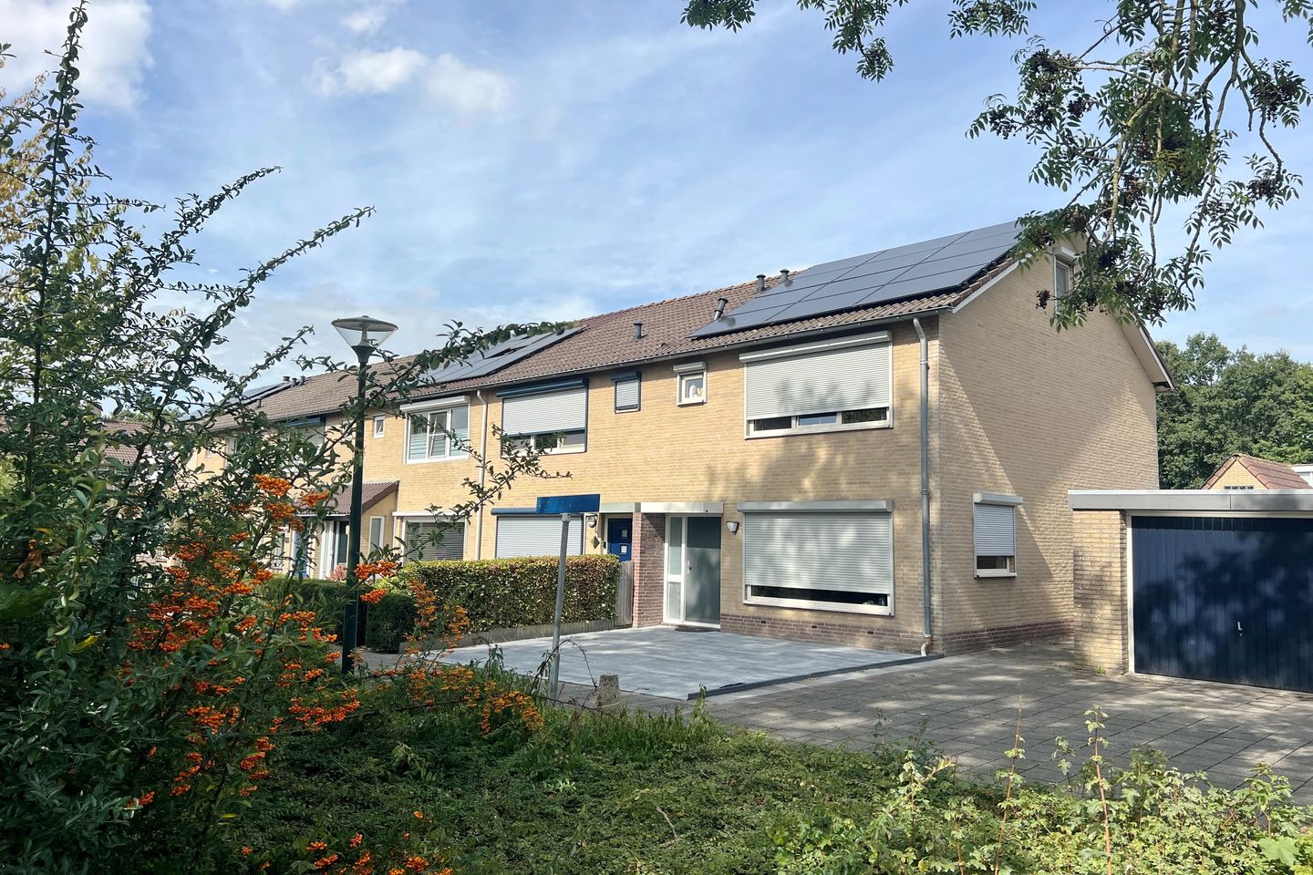 Leuk en rustig gelegen aan een pleintje in een gezellige woonwijk aan de rand van de dorpskern, een hoekwoning met een grote vrijstaande garage/berging met vliering en diepe achtertuin.