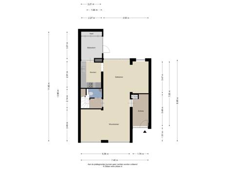 De woning is voorzien van een ruime woonkamer, keuken en een bijkeuken.