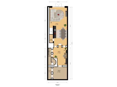 - 92 m² (11,50 meter diep en 8,00 meter breed)