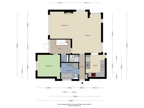 Via de voorzijde betreedt u de woning en komt u binnen in de entree. Vanuit deze entree heeft u enerzijds toegang tot de eetkamer en woonkamer, en anderzijds tot de slaapkamer en badkamer op deze verdieping. Ook bevindt zich hier de trapopgang naar de eerste verdieping. Het hoge plafond geeft de entree een ruimtelijke en verzorgde uitstraling. De wanden zijn afgewerkt met stucwerk, het plafond is hier afgewerkt met een Italiaans systeemplafond en op de vloer ligt een tegelvloer in een lichte kleurstelling.