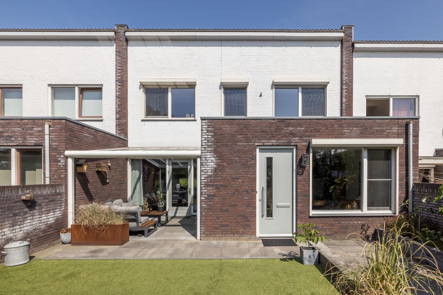 De aangelegde en omheinde (voor-)tuin met carport aan het Esperantoplein biedt u volop privacy. Het overdekte terras voor de pui maakt het genieten van deze tuin compleet en is zeer functioneel.